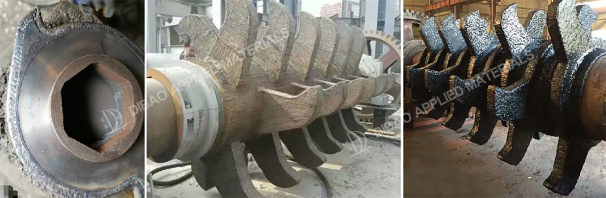 | DB-969 | Self shield or gas protection or submerged arc | Mixed gas/neutral flux | 1.6,2.0,2.4,2.8,3.2 | C,Mn,Si,Cr,Mo | 55-59 | The weld metal is a self-hardening martensitic structure. It can withstand high stress wear and viscous wear. Suitable for wear between metal and metal or between metal and sand. | Dredging the cutter, stirring the spiral leaves, farming tools, crushers, etc. |